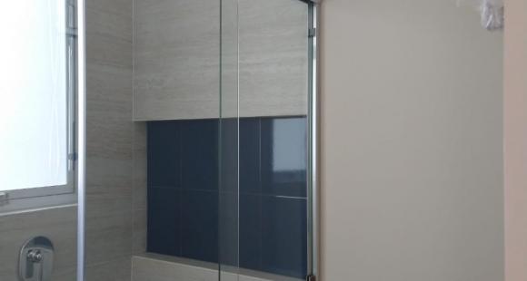 2 baños completos con cancel, mueble, espejo y accesorios.