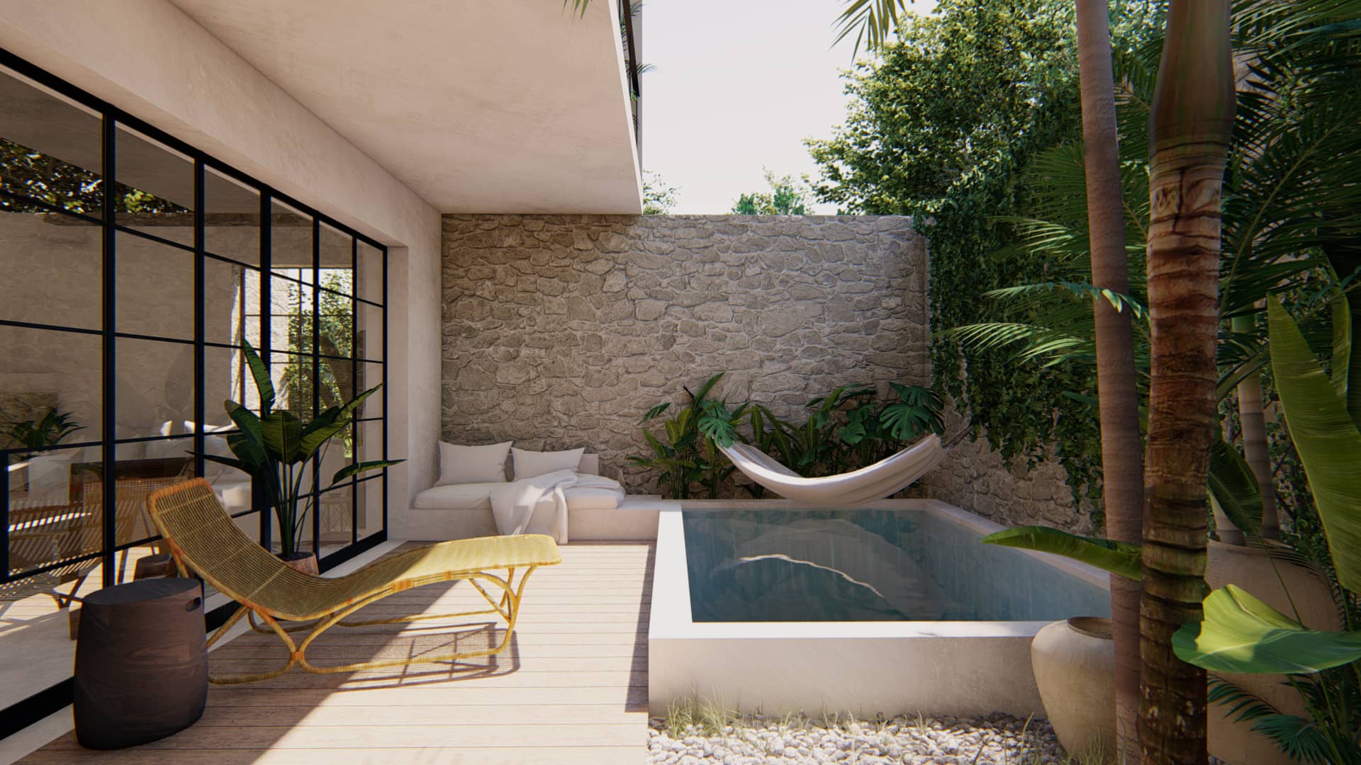 Cienfuegos es un desarrollo boutique de inspiración mediterránea. Desde la concepción del proyecto, el enfoque principal del diseño fue incorporar la mayor cantidad posible de vegetación con el fin de conservar la verdadera esencia de Tulum. Materiales nobles como la piedra y madera nos anclan a la madre tierra, su jardines y terrazas nos conectan con el cielo, por eso la arquitectura simple y abierta de Cienfuegos le asegurará vivir en el equilibrio, la tranquilidad y la conexión con la naturaleza que buscan todos aquellos que vienen a vivir o vacacionar aquí.