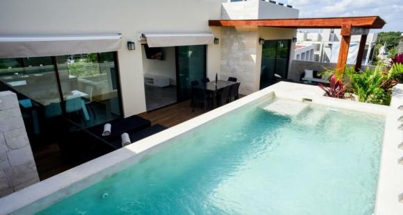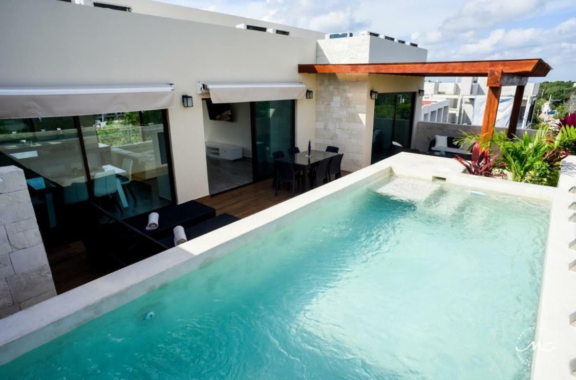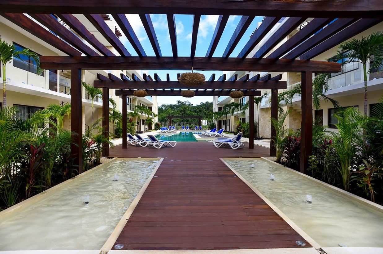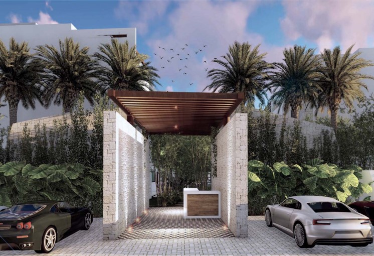 Blue Luxury, la perfecta fusión entre el diseño moderno y la exuberante naturaleza. Este desarrollo está ubicado en la nueva carretera que llega hasta el mar, ofreciendo un acceso más rápido y exclusivo a las hermosas playas de Tulum.
