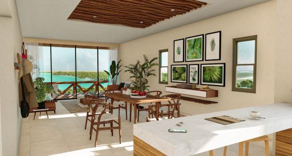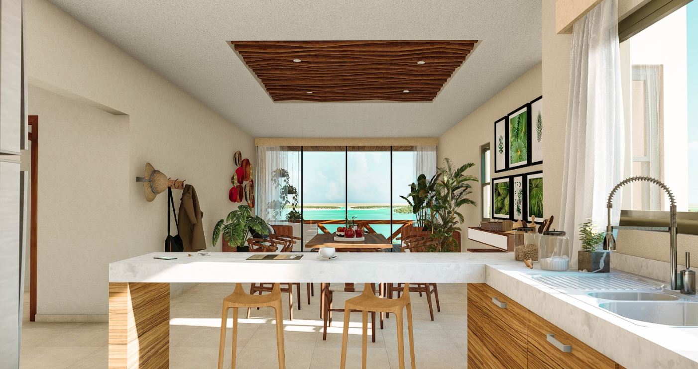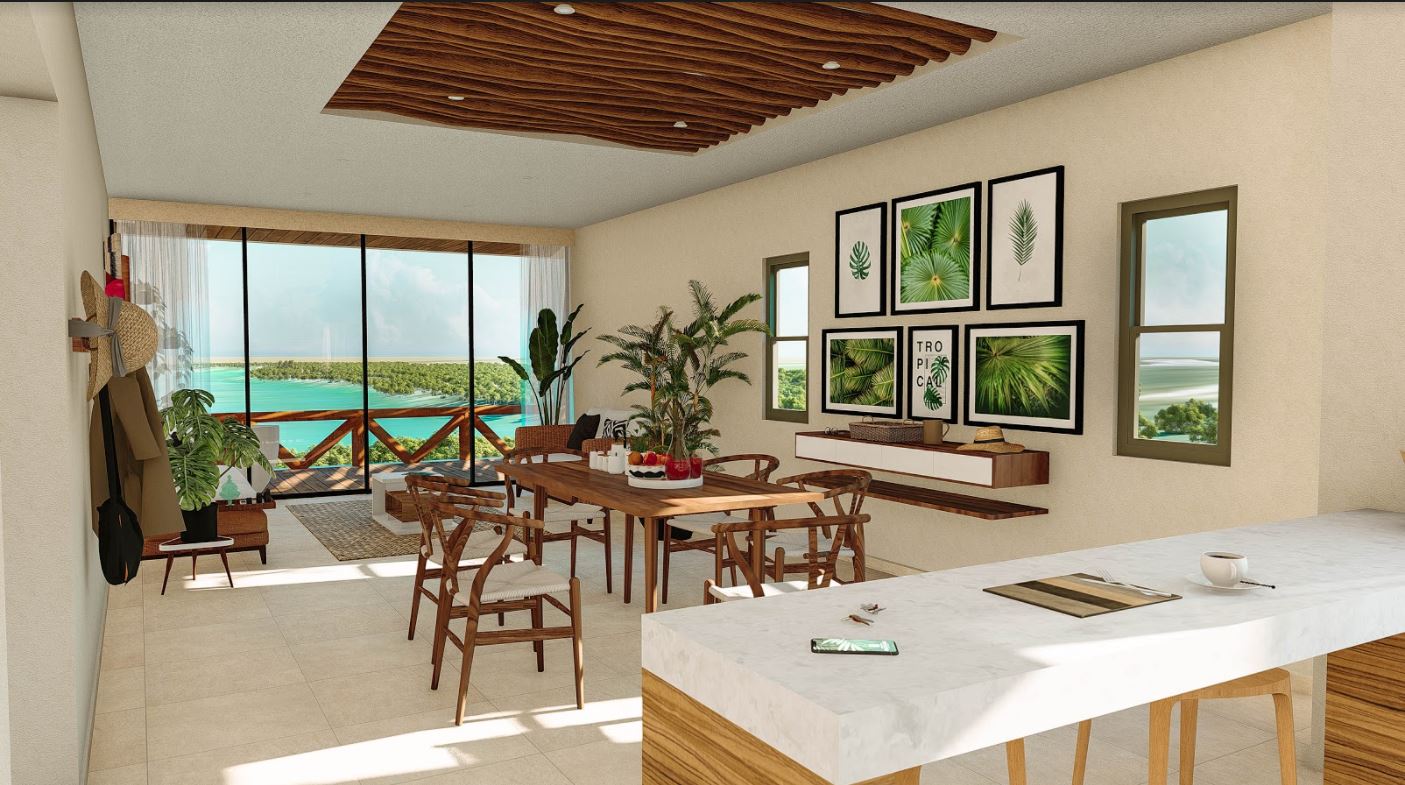 Unidades smart home con vista de 360 grados sobre el nivel del agua, alberca infinita y panorámica en cada roof garden (1 por torre), gimnasio al aire libre, senderos para jogging y caminata, alberca orgánica, seguridad 24/7, marina seca, acceso a la laguna, plaza comercial, biodigestores para cada unidad, área recreacional para niños, paneles solares, elevadores en cada torre... todo con una vista.
