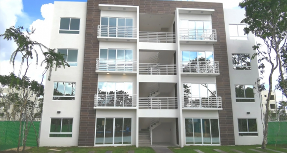 Los departamentos están ubicados en edificios de 4 niveles con dos departamentos por nivel.