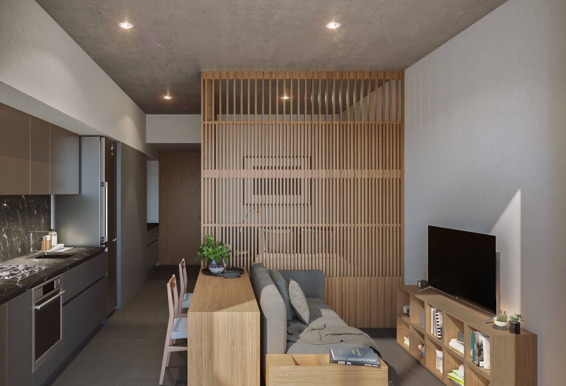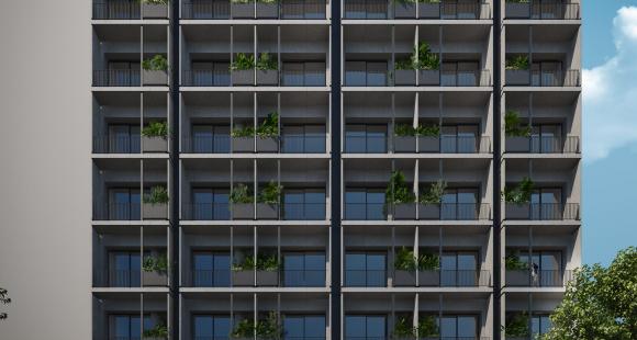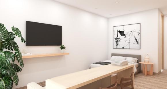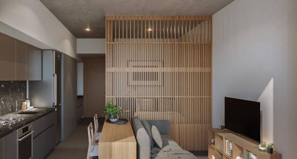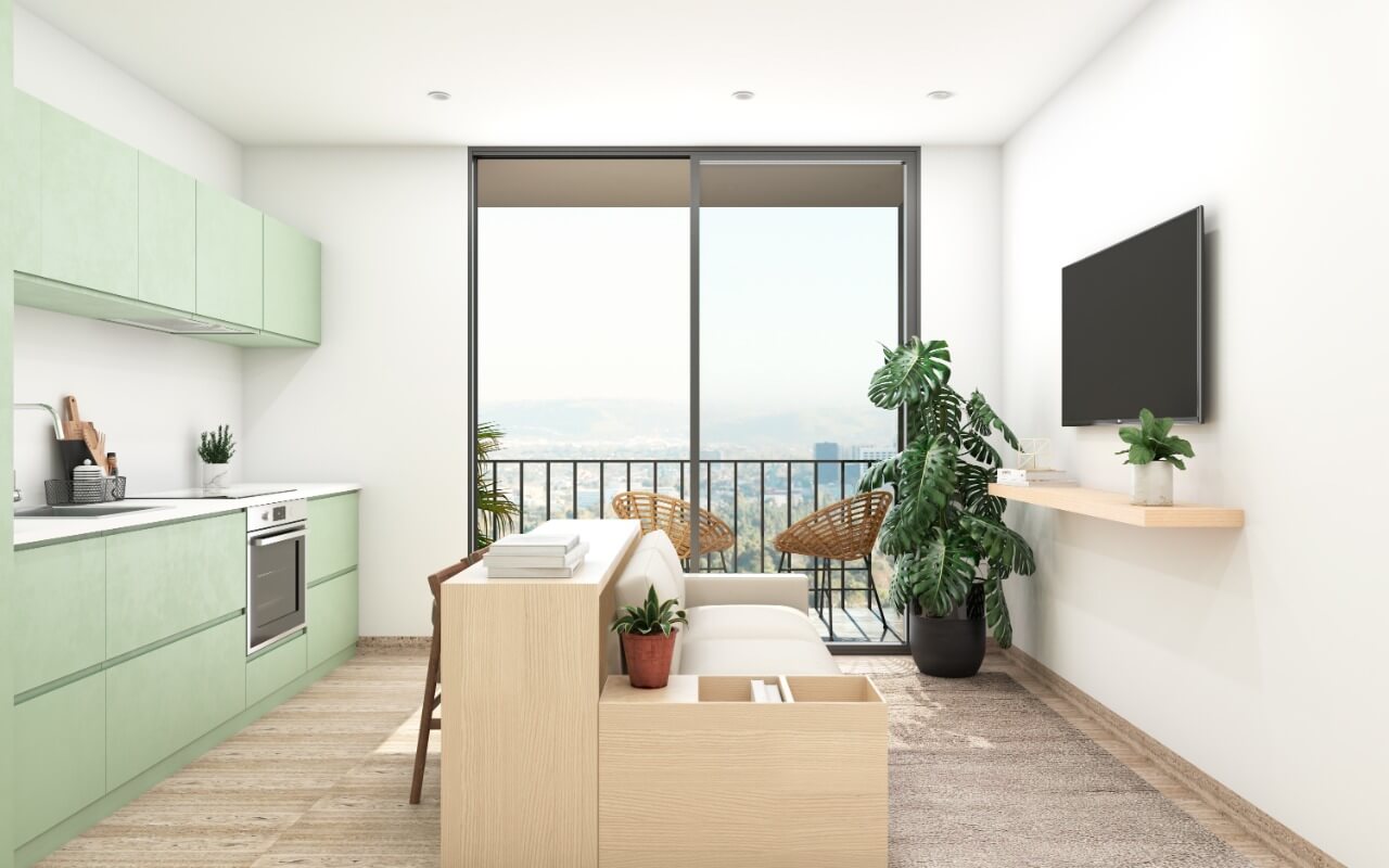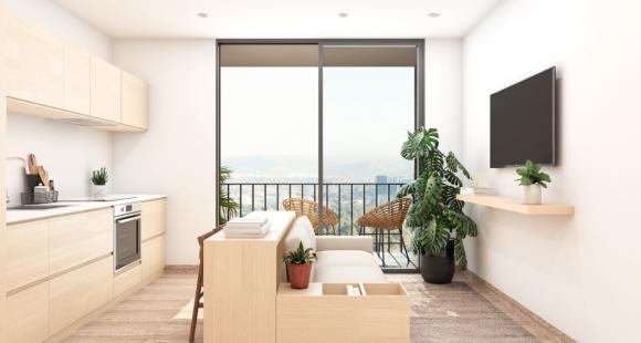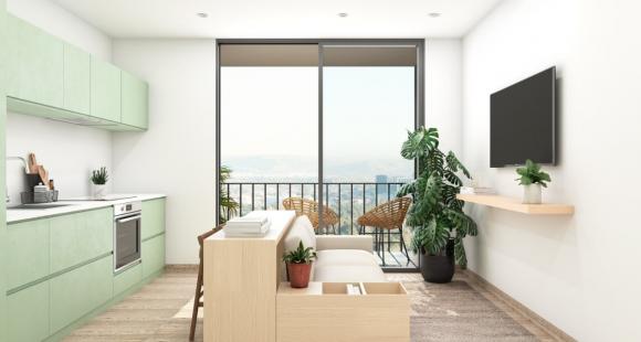 Desarrollo de 81 departamentos de 39 a 67m2 de 1 a 2 habitaciones, 1 baño completo, sala, comedor y cocina.
