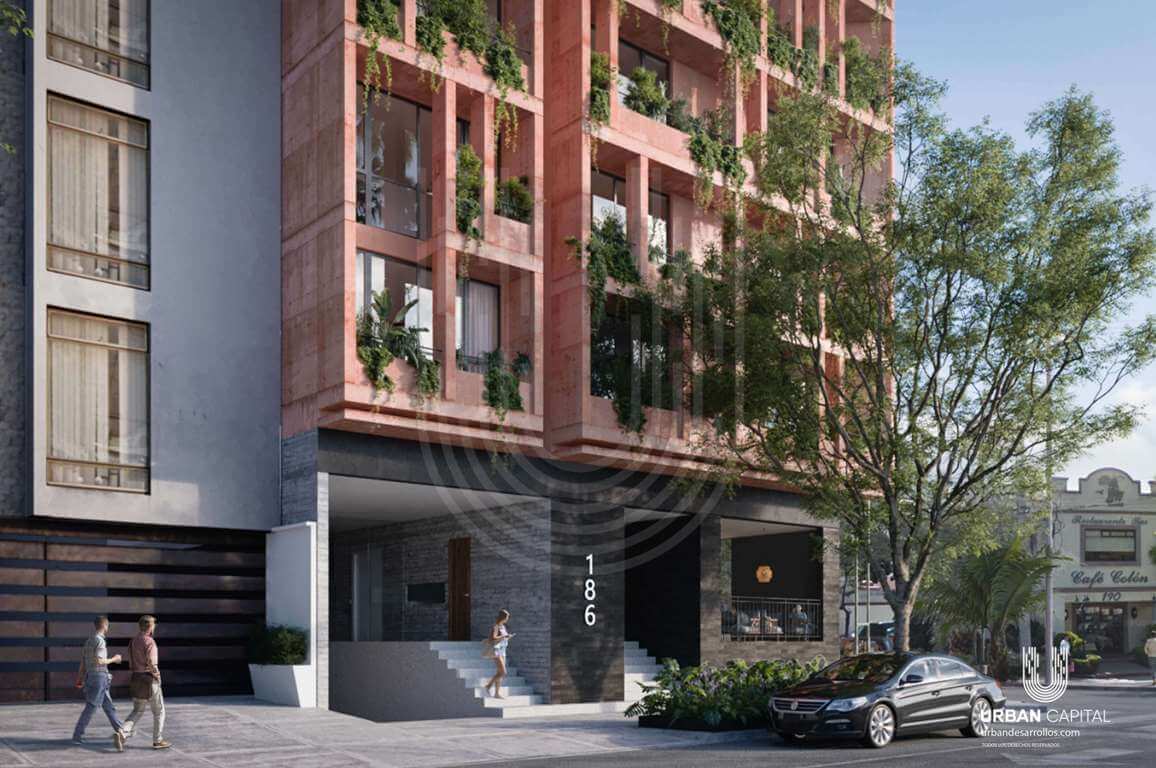 El edificio Urban Bajío se proyecta como uno de los hitos arquitectónicos más importantes de la colonia Roma Sur. El impacto visual que representa en este contexto lo catapulta como un referente inmobiliario en la zona.