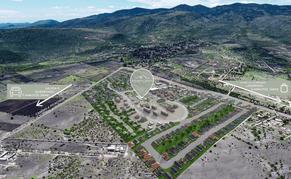Distrito SAHAI es un complejo inmobiliario de 40 hectáreas a tan soló 10 minutos del centro de la hermosa ciudad de San Miguel de Allende. Con una ubicación privilegiada debajo de las Montañas de Los Picachos nos ofrece una de las mejores vistas naturales que SMA puede ofrecer y una ubicación estratégica en la entrada de la ciudad por la carretera Querétaro.