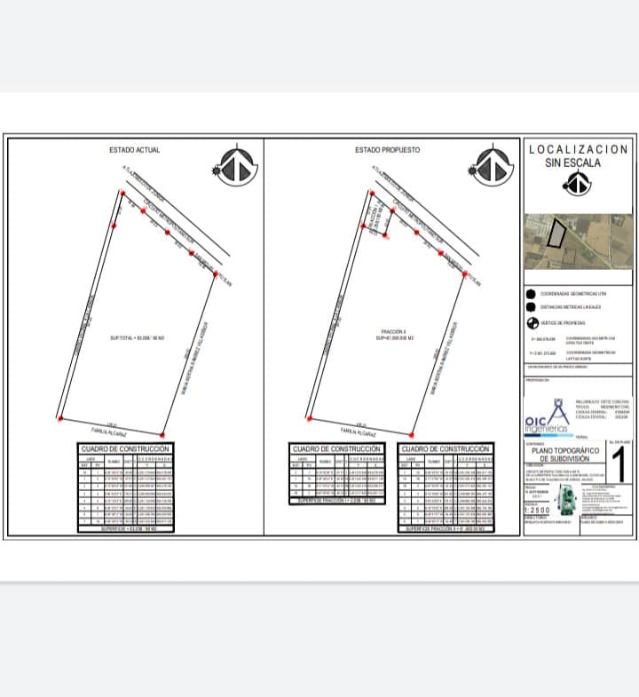 * PLANO TOPOGRÁFICO DE SUBDIVISIÓN N-1 FRACCIÓN II , SUPERFICIE 61,000 MT LIBRES .