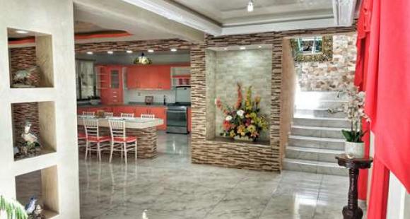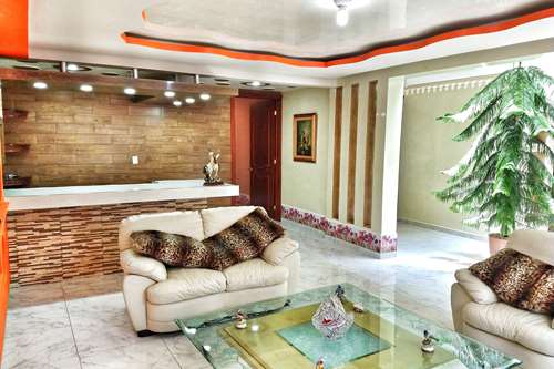 Casa de estilo contemporáneo, exterior aparentemente discreto pero en interior acabados de excelente calidad, paredes en paladio, puertas y marcos con tallado de madera y bajorelieve, cornisas elegantes en todos los techos, decoraciones en paredes estilo moderno, barandales de acero inoxidable y de cristal templado, molduras de lujo en centro de cuarto, marcos de aluminio en ventanas y decoraciones de aluminio en baños.